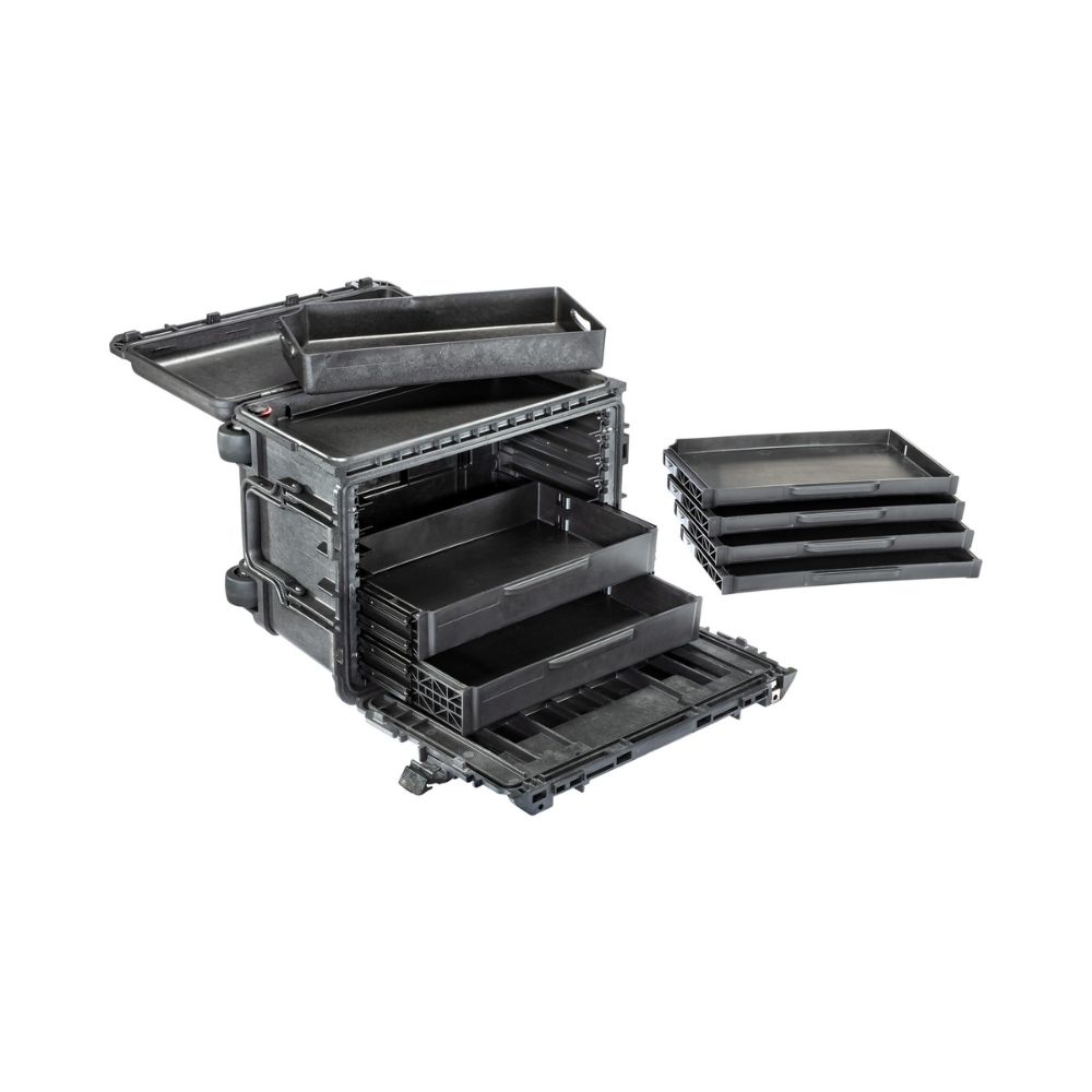 2 versões disponíveis: com 6 (4 gavetas rasas e 2 gavetas profundas) ou 7 (6 gavetas rasas e 1 gaveta profunda) gavetas removíveis para ferramentas
